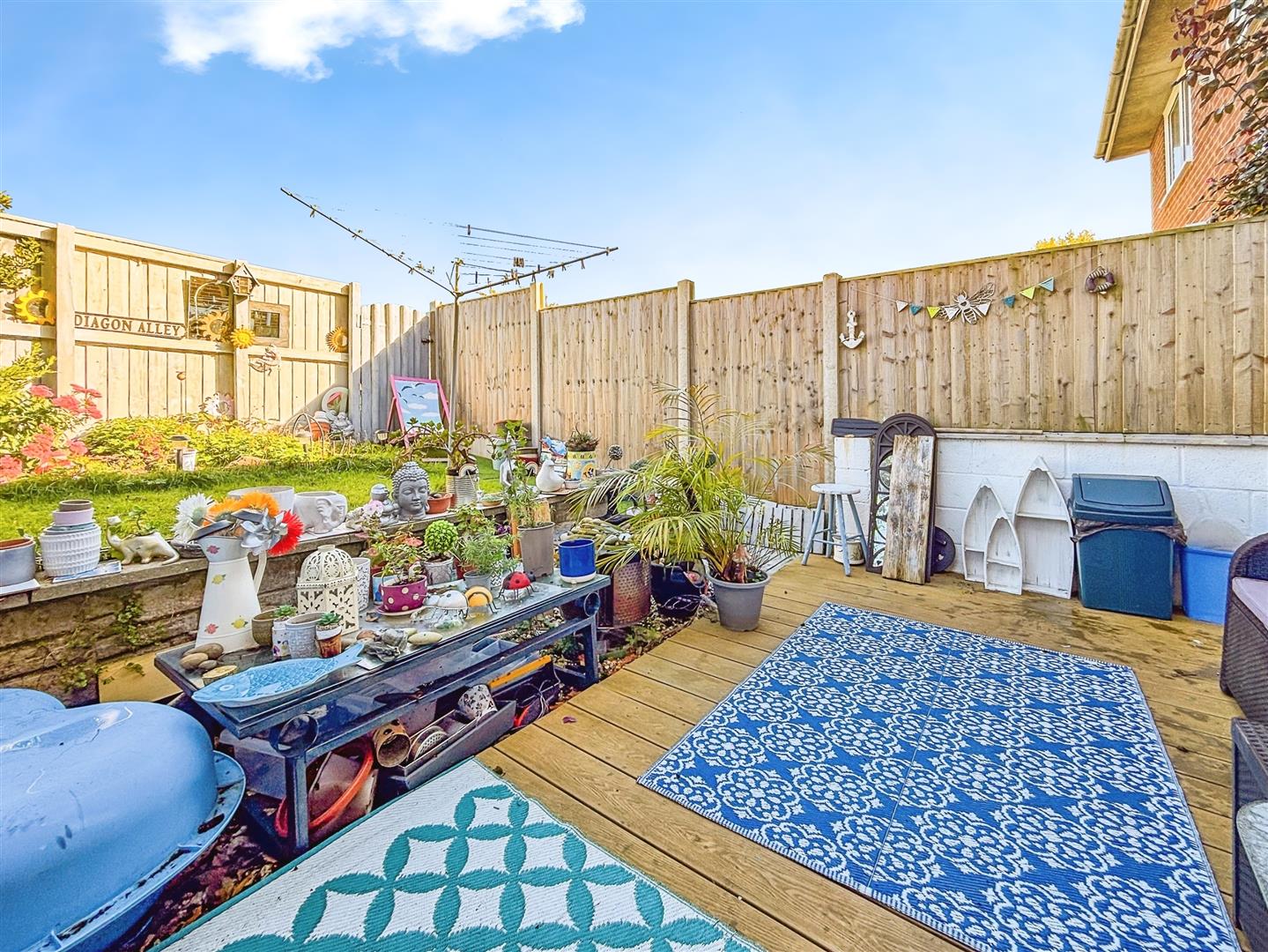 The rear garden is mainly laid to lawn and includes a pathway leading to a decking area adjacent to the house—perfect for relaxing or entertaining. There is also a nearby children’s play area for local residents. On-street parking is available at the front of the property on a first-come, first-served basis along Cherry Tree.