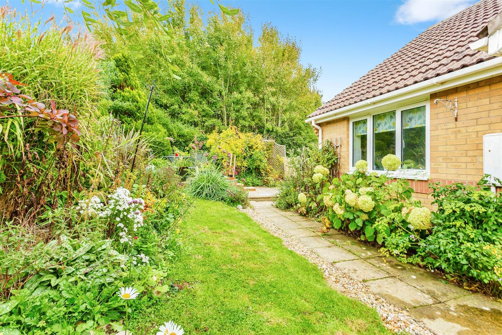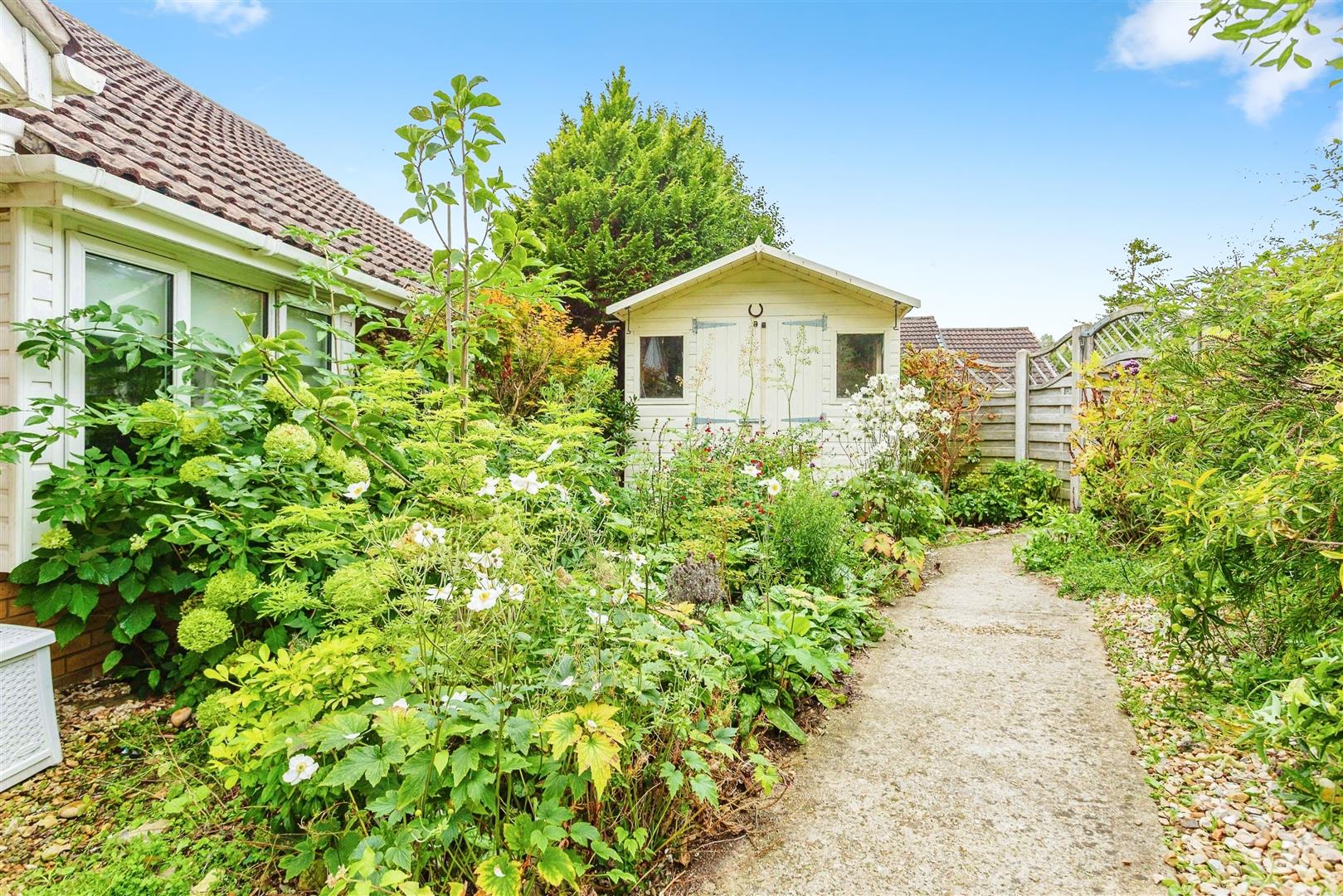 Outside, the bungalow is surrounded by a low maintenance wrap-around garden benefitting from a wooden shed and elevated views. The property also offers driveway parking leading to a single garage.