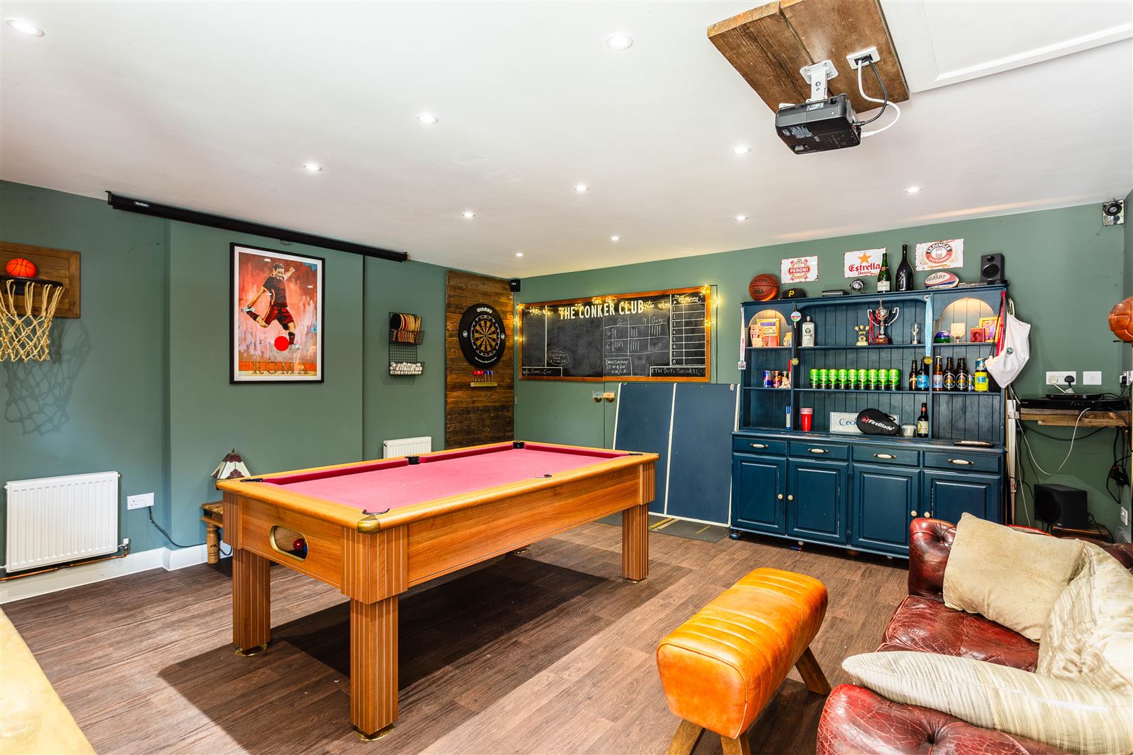 A highlight of the property is the former double garage, which has been converted into a games room with a rear aspect window, door to the garden, and provides light and power. This room could serve as a garage again or alternatively be used for home hobbies or as a home gym.
