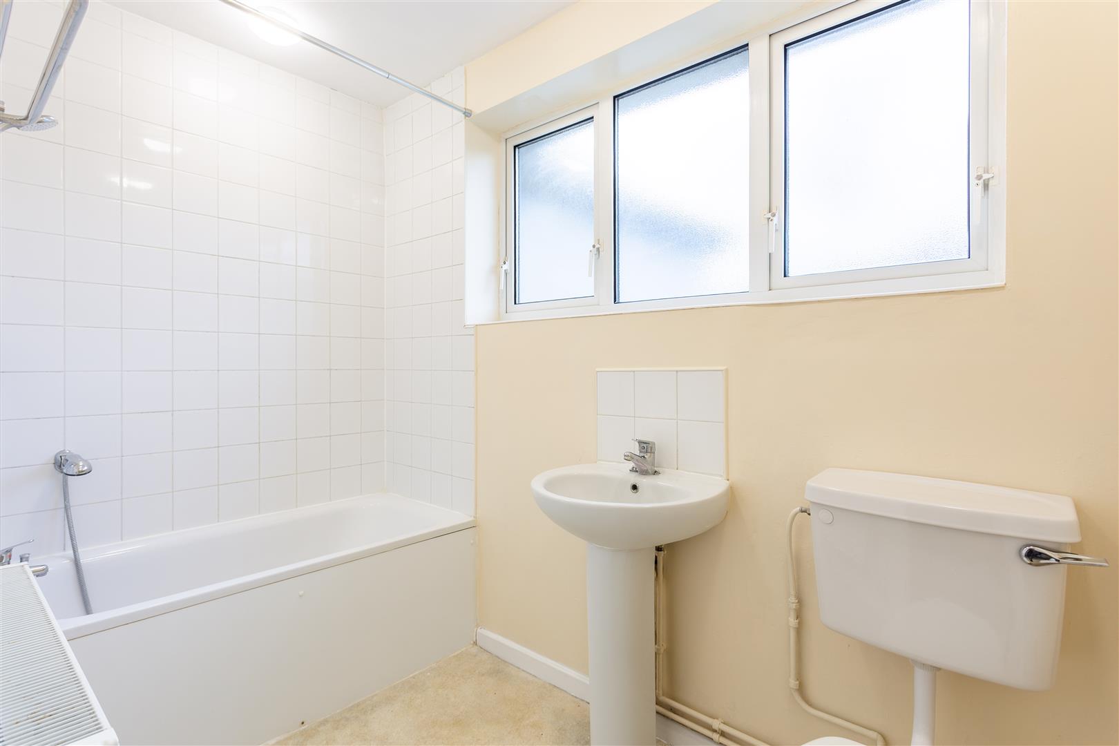 The family bathroom is fitted with a white suite comprising a bath with shower facility, hand wash basin and WC, with tiled walls to the bath area, a radiator and an obscure glazed front-aspect window.