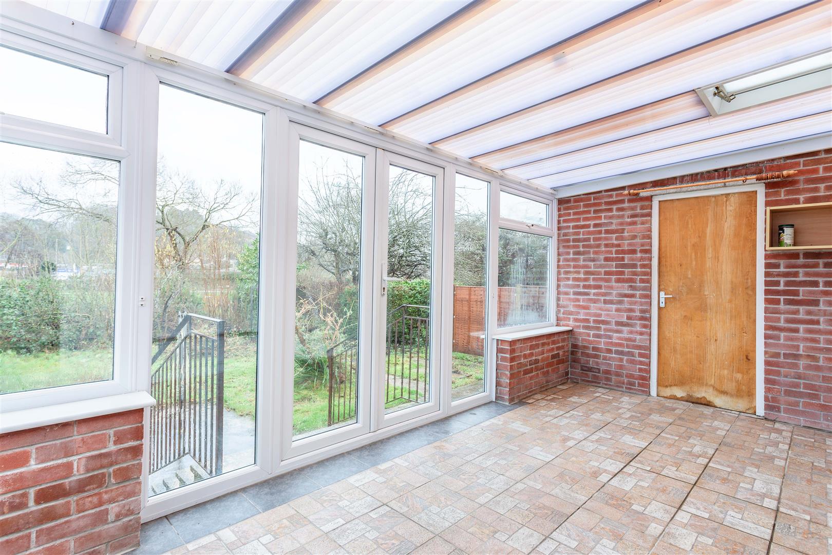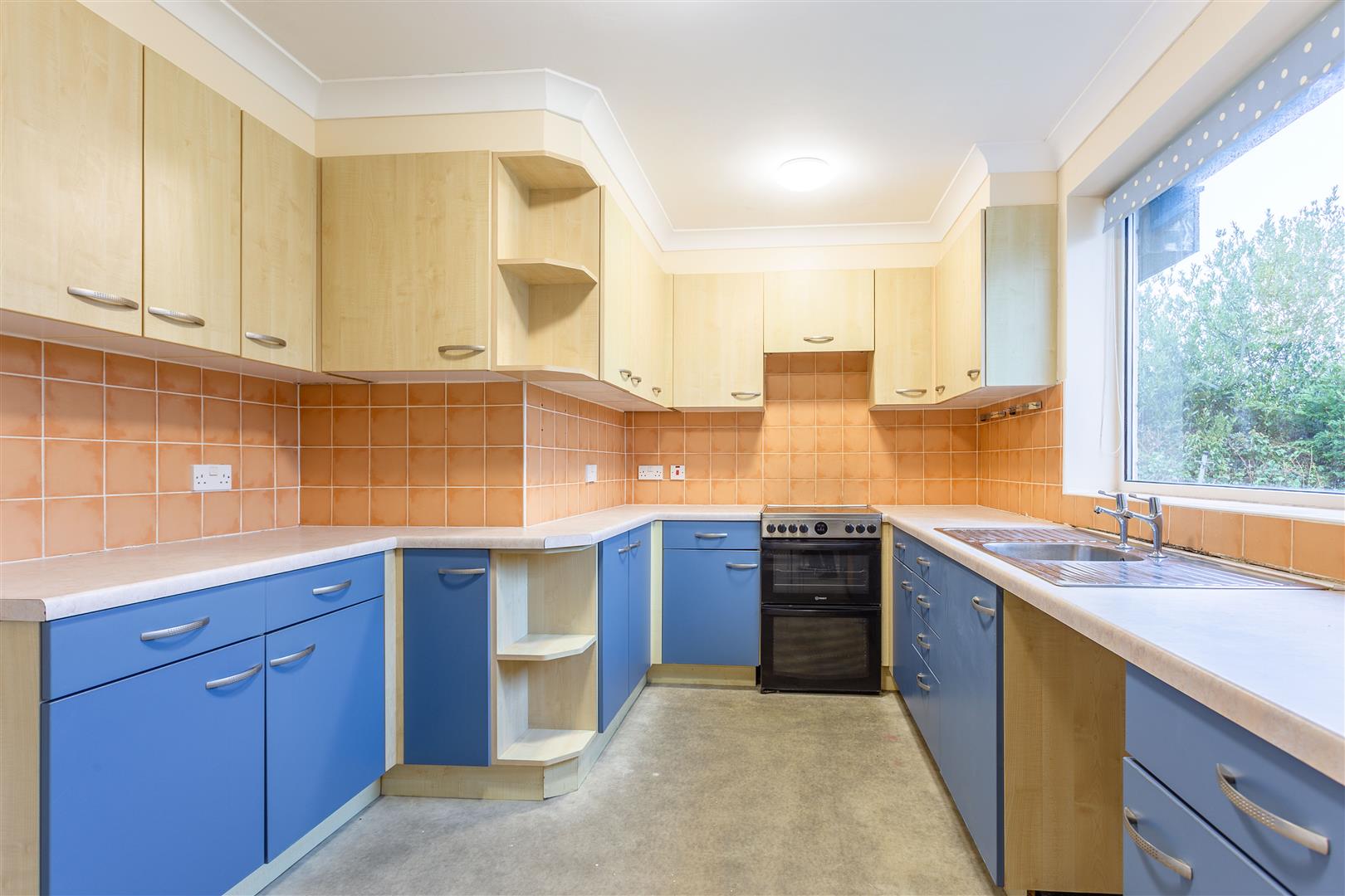 The kitchen is fitted with a range of wall and base units and provides space for a freestanding cooker along with areas for appliances of your choice. A large window overlooks the rear garden, creating a bright and pleasant space. A door from the kitchen leads into a spacious conservatory, offering versatile additional accommodation suitable for dining or seating, with double patio doors opening out onto the garden. An internal door from the conservatory provides direct access to the garage for added convenience.