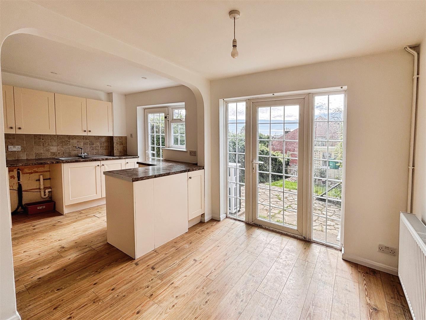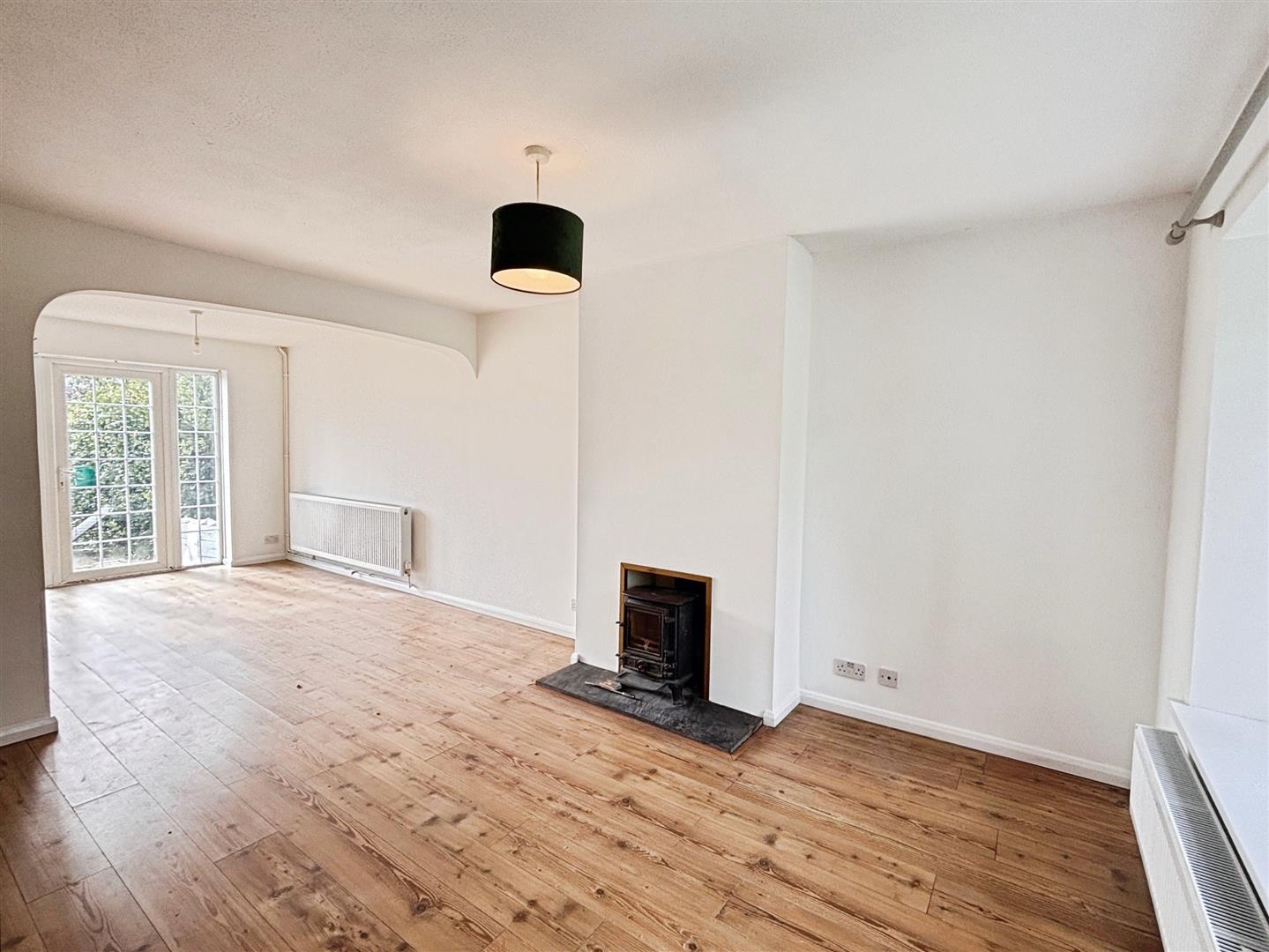 A well-presented three-bedroom home in a popular residential location. The ground floor offers a spacious open-plan living and dining area with bay window to the front, French doors to the rear garden, and a wood-burning stove. The adjoining shaker-style kitchen includes a built-in oven, gas hob, and space for appliances, with direct access to the garden.