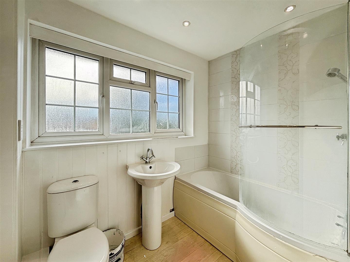 Upstairs, there are two double bedrooms, a single bedroom/study, and a modern bathroom with bath and wall shower.