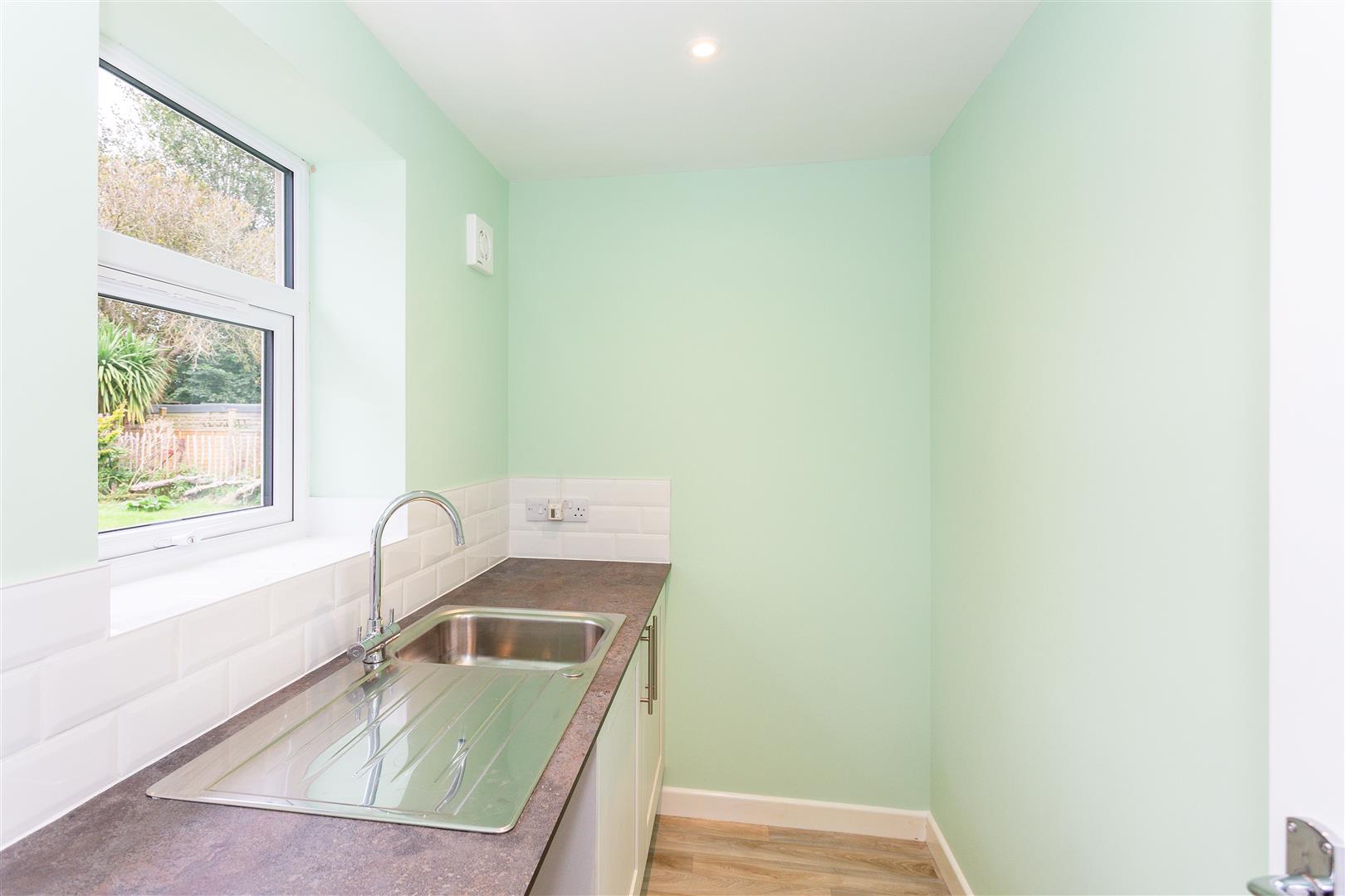 Rear aspect with stainless steel sink, storage cupboards and space for washing machine/ tumble dryer 2.47m x 1.49m