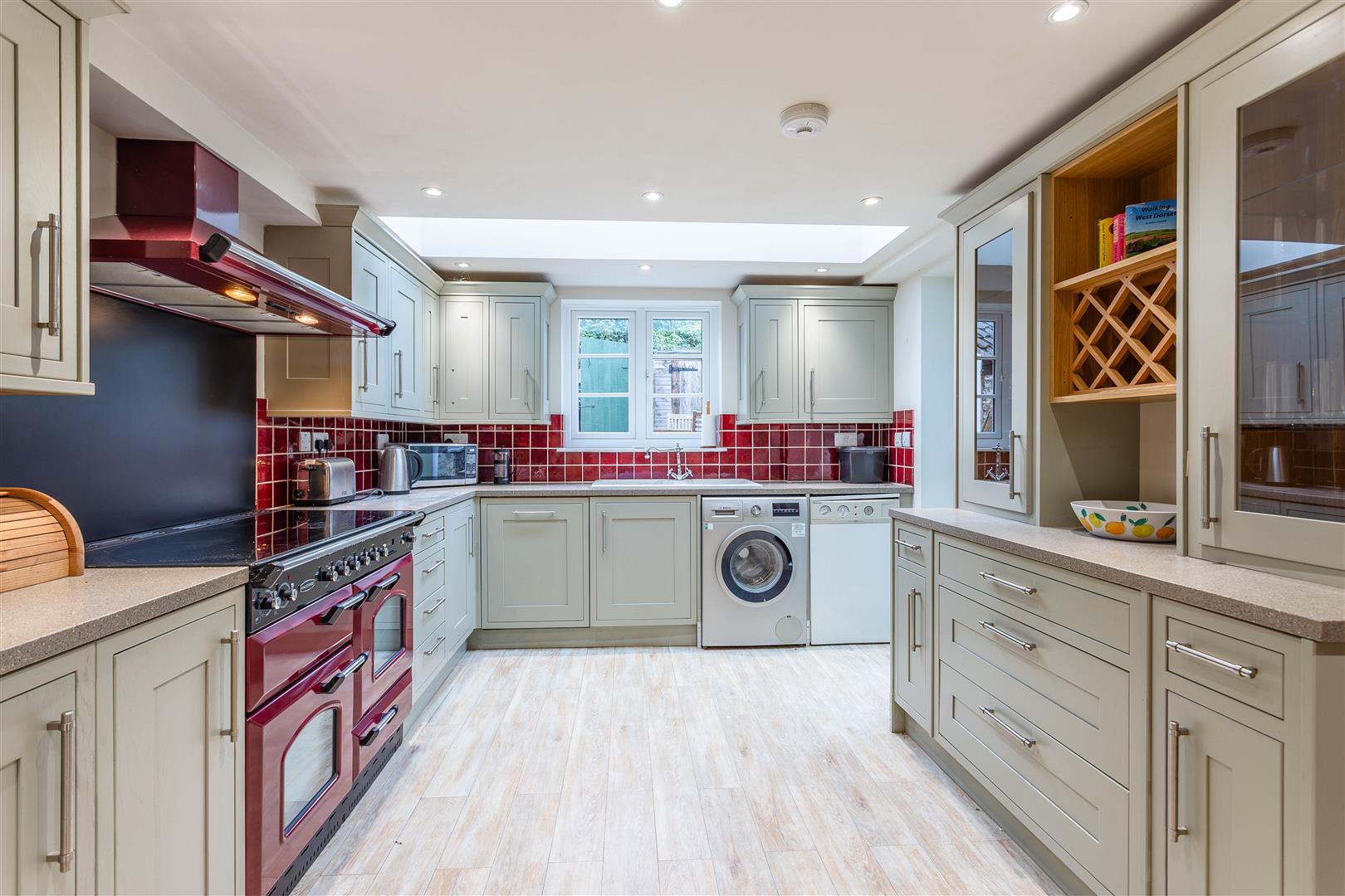 The property benefits from oil-fired central heating via a modern combi boiler, and a well-appointed kitchen fitted with a tiled floor and quality appliances including a Rangemaster cooker with matching hood, integrated dishwasher, washing machine, and integrated fridge and freezer. The bathrooms and shower rooms are finished to a contemporary standard.