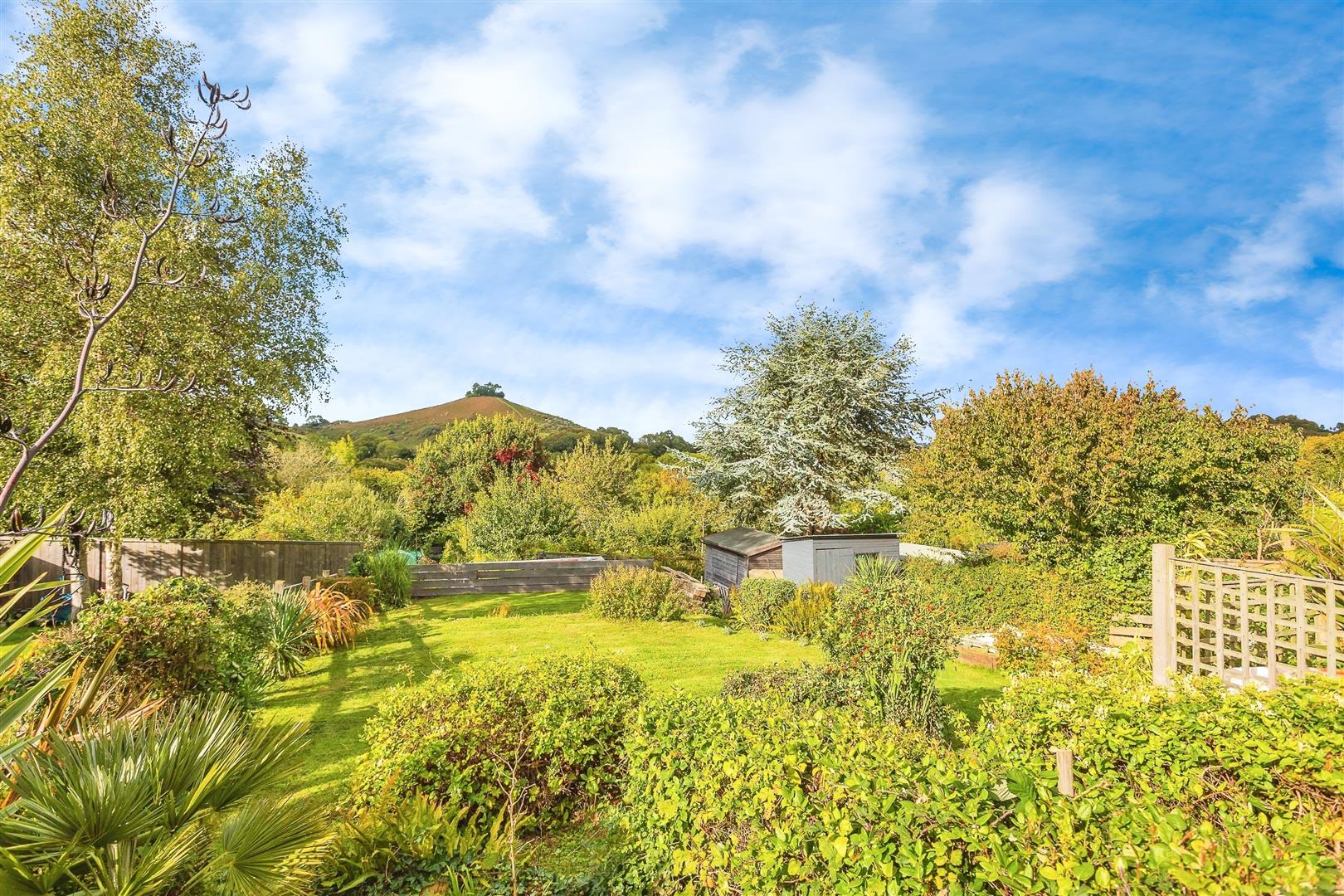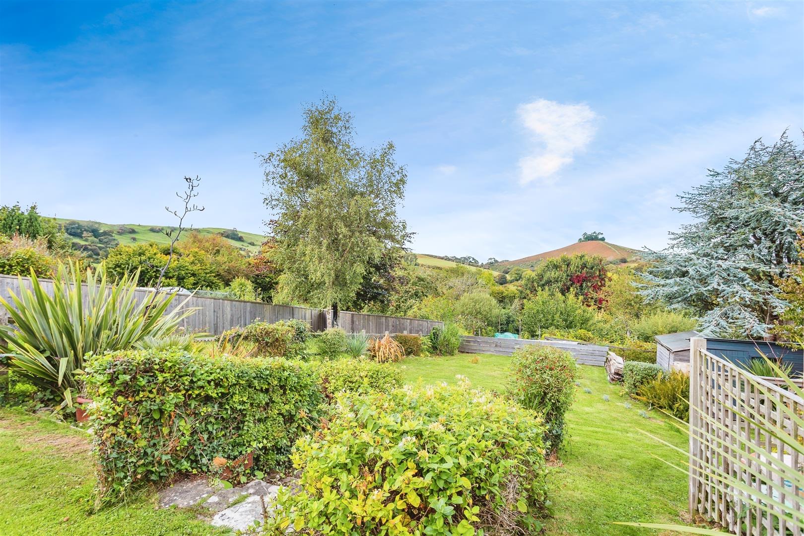 Externally, the property features a patio leading directly into a lean-to summer house/garden room with glass patio doors, providing a versatile space for relaxing or entertaining. The tiered landscaped gardens are well stocked with shrubs and trees, with laid-to-lawn areas facing towards Colmers Hill, making the most of the outstanding outlook. To the front of the property there is parking for several cars.