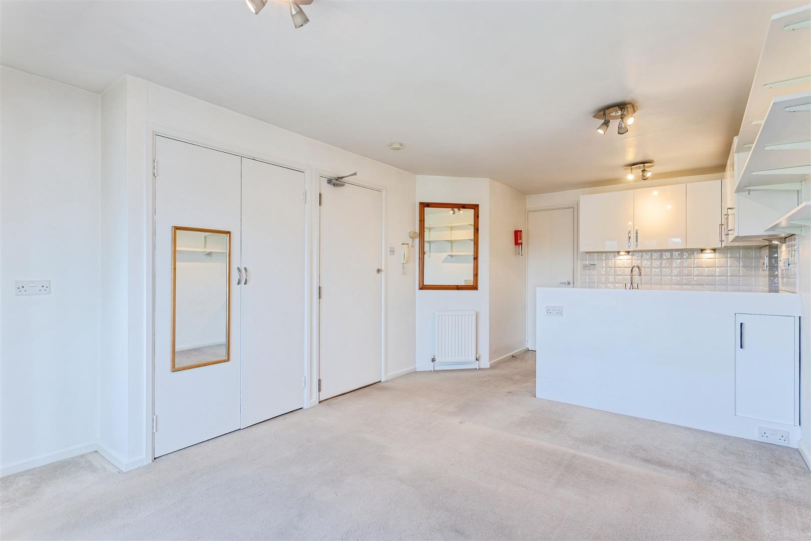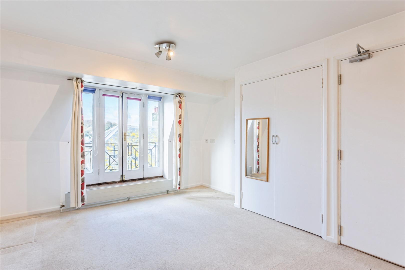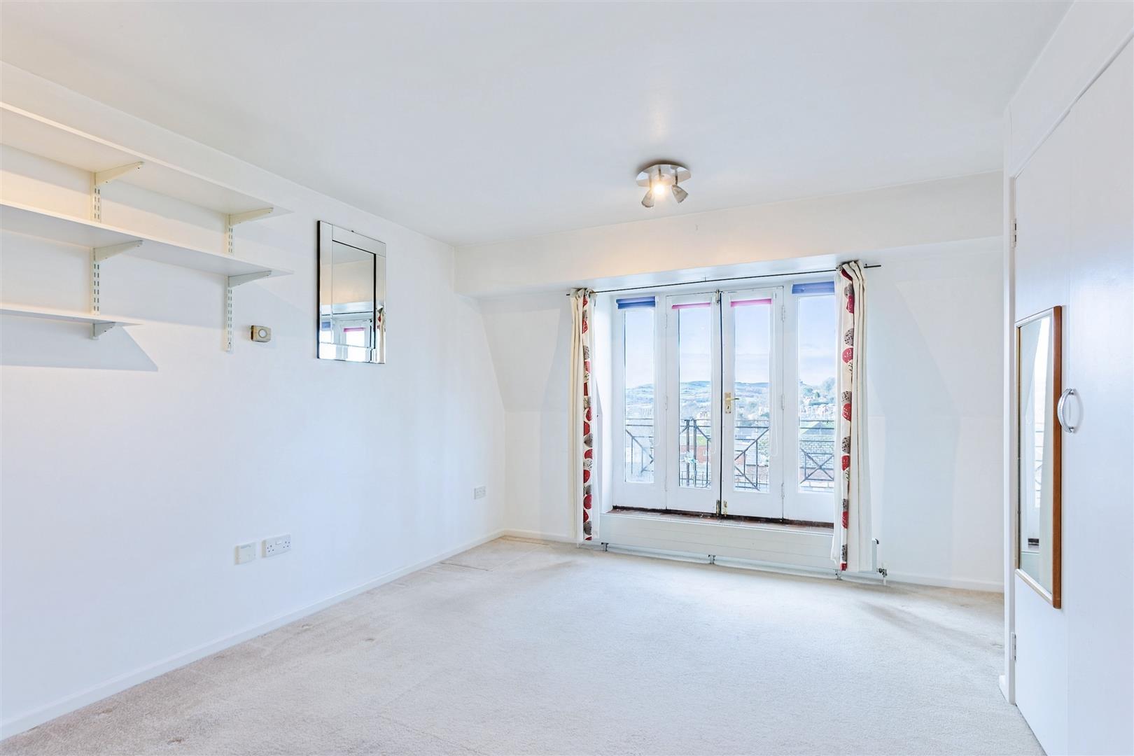 The well-arranged studio space benefits from a built-in wardrobe providing useful storage, while French doors open onto a Juliet balcony offering pleasant far-reaching countryside views, including towards the distinctive Colmer's Hill. The main living area provides ample room for furnishings, creating a practical and versatile open-plan environment.